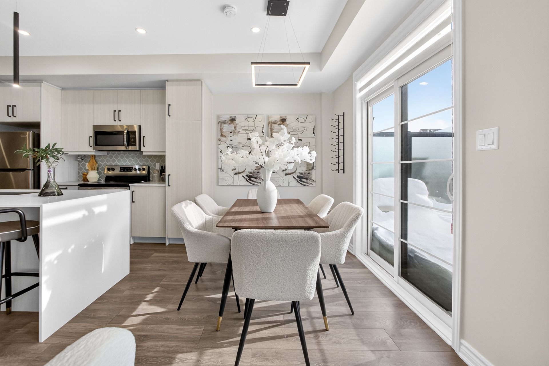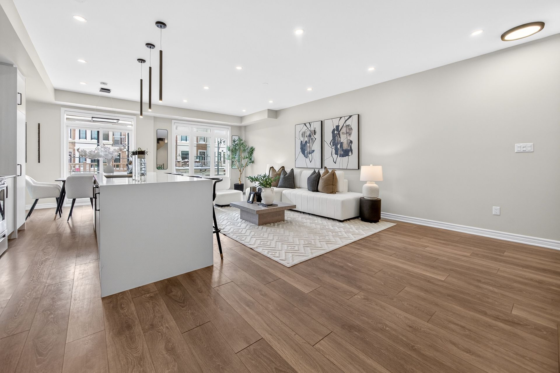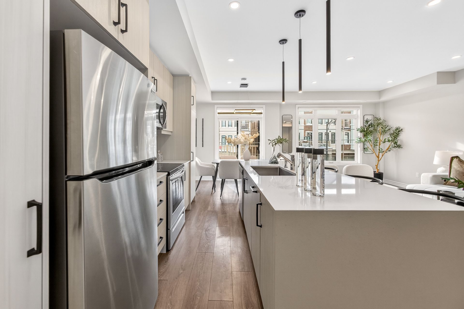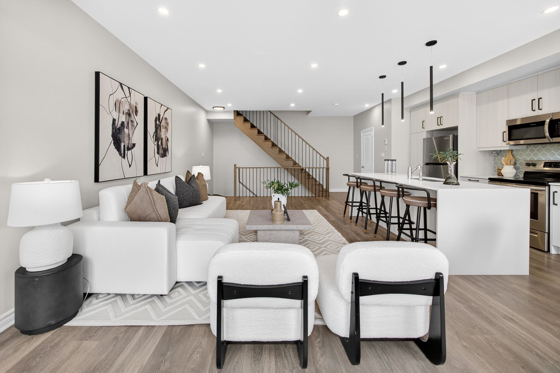 This stunning freehold three-storey townhome in Milton, built by the award-winning Great Gulf, offers a luxury open-concept layout with premium upgrades across all levels. The home features 9-foot ceilings on the main, second, and third floors, creating an airy and spacious atmosphere. Premium Kitchen with upgraded soft-close cabinet , quartz countertop with a waterfall edge, glass backsplash, and designer pendant lighting. Modern Flooring & Finishes: Laminate flooring is found throughout the home, complemented by hardwood stairs with iron pickets. The entire interior has been professionally painted. New Pot lights contribute to a luxurious look by offering a sleek, unobtrusive design that provides versatile, high-quality illumination , Smooth Ceiling for a Neat Look. Spacious Bedrooms & Baths. Both bedrooms are sized to accommodate King and Queen beds. The three upgraded washrooms feature high-ceiling mirrors, Quartz Counter Tops and glass enclosures for both the master ensuite and the second bathroom . Modern Window Rollers . The property includes three-car parking with no sidewalk and features balconies on both the second and third levels. Entrance to Home from garage and Garage opener for Easy Daily Access .Located in the visionary master-planned community of Milton Village, the home is positioned near Hwy 25 and Britannia Road. Conveniently close to the Milton GO Station and Highways 401 and 407 and Minutes away from Rattlesnake Point and Kelso Conservation Area