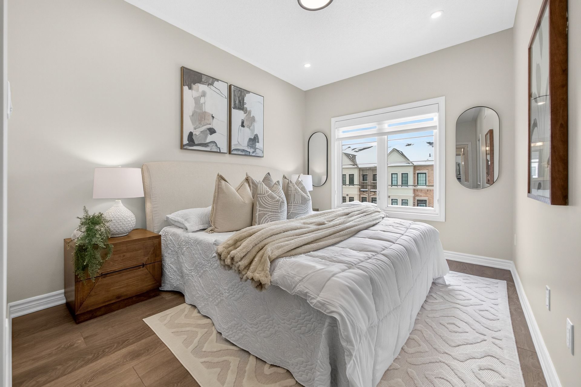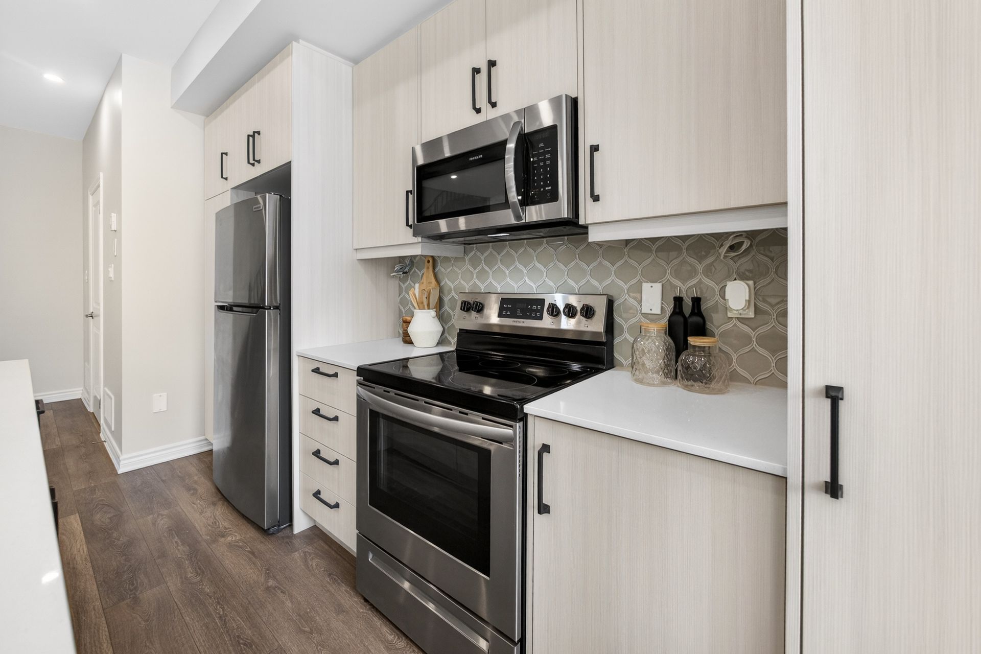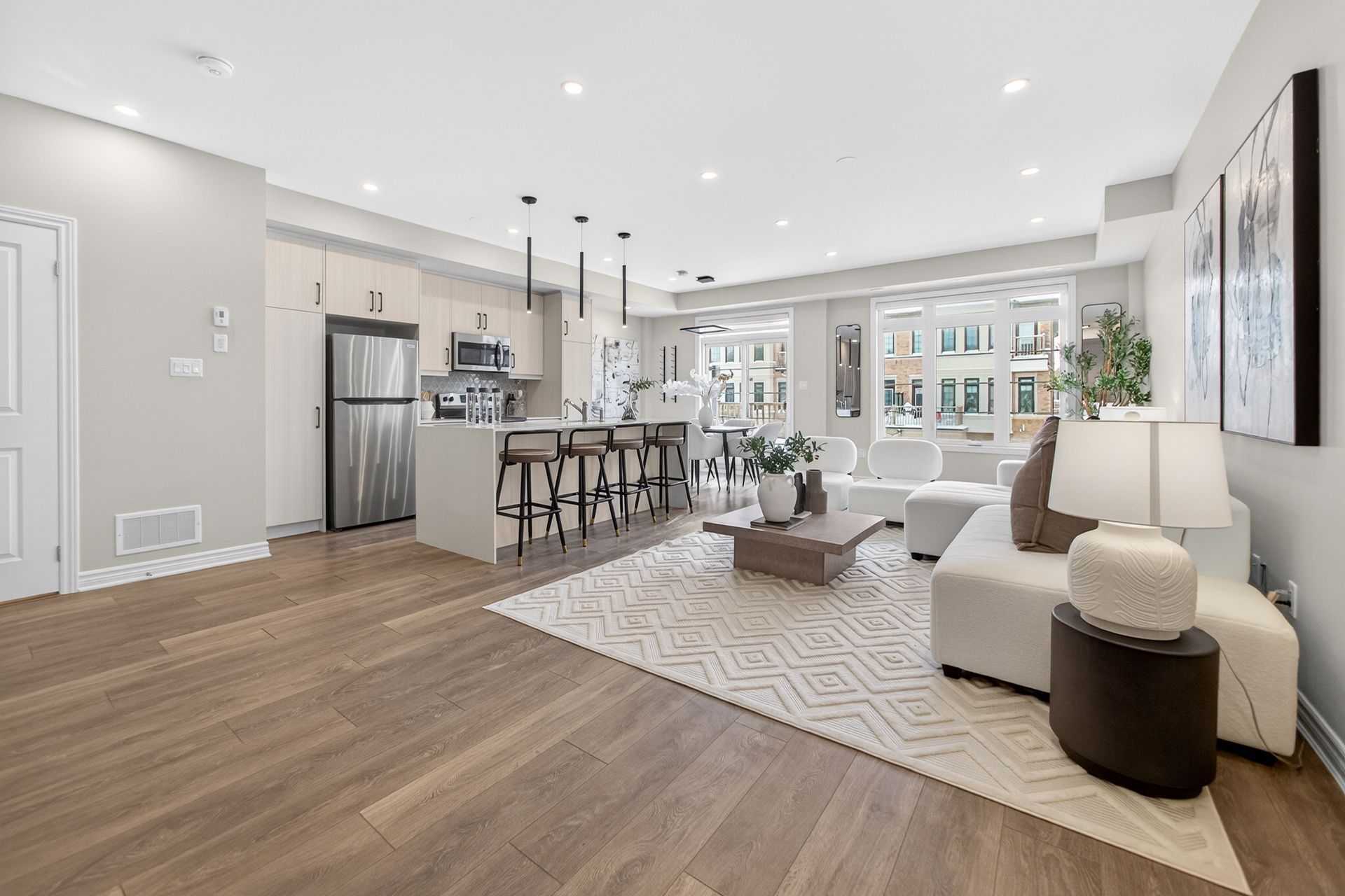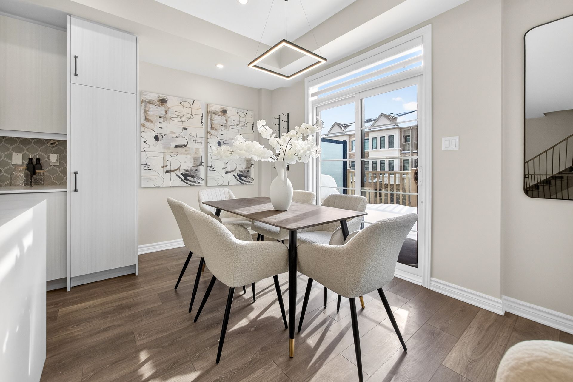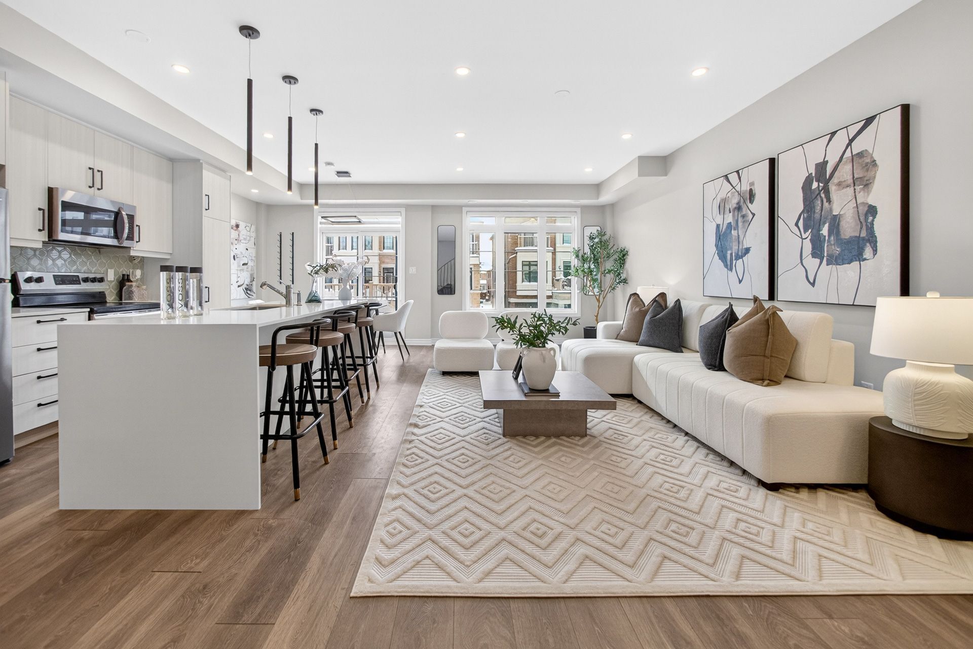 This stunning freehold three-storey townhome in Milton, built by the award-winning Great Gulf, offers a luxury open-concept layout with premium upgrades across all levels. The home features 9-foot ceilings on the main, second, and third floors, creating an airy and spacious atmosphere. Premium Kitchen with upgraded soft-close cabinet , quartz countertop with a waterfall edge, glass backsplash, and designer pendant lighting. Modern Flooring & Finishes: Laminate flooring is found throughout the home, complemented by hardwood stairs with iron pickets. The entire interior has been professionally painted. New Pot lights contribute to a luxurious look by offering a sleek, unobtrusive design that provides versatile, high-quality illumination , Smooth Ceiling for a Neat Look. Spacious Bedrooms & Baths. Both bedrooms are sized to accommodate King and Queen beds. The three upgraded washrooms feature high-ceiling mirrors, Quartz Counter Tops and glass enclosures for both the master ensuite and the second bathroom . Modern Window Rollers . The property includes three-car parking with no sidewalk and features balconies on both the second and third levels. Entrance to Home from garage and Garage opener for Easy Daily Access .Located in the visionary master-planned community of Milton Village, the home is positioned near Hwy 25 and Britannia Road. Conveniently close to the Milton GO Station and Highways 401 and 407 and Minutes away from Rattlesnake Point and Kelso Conservation Area
