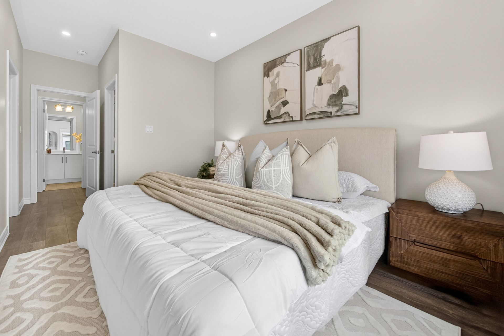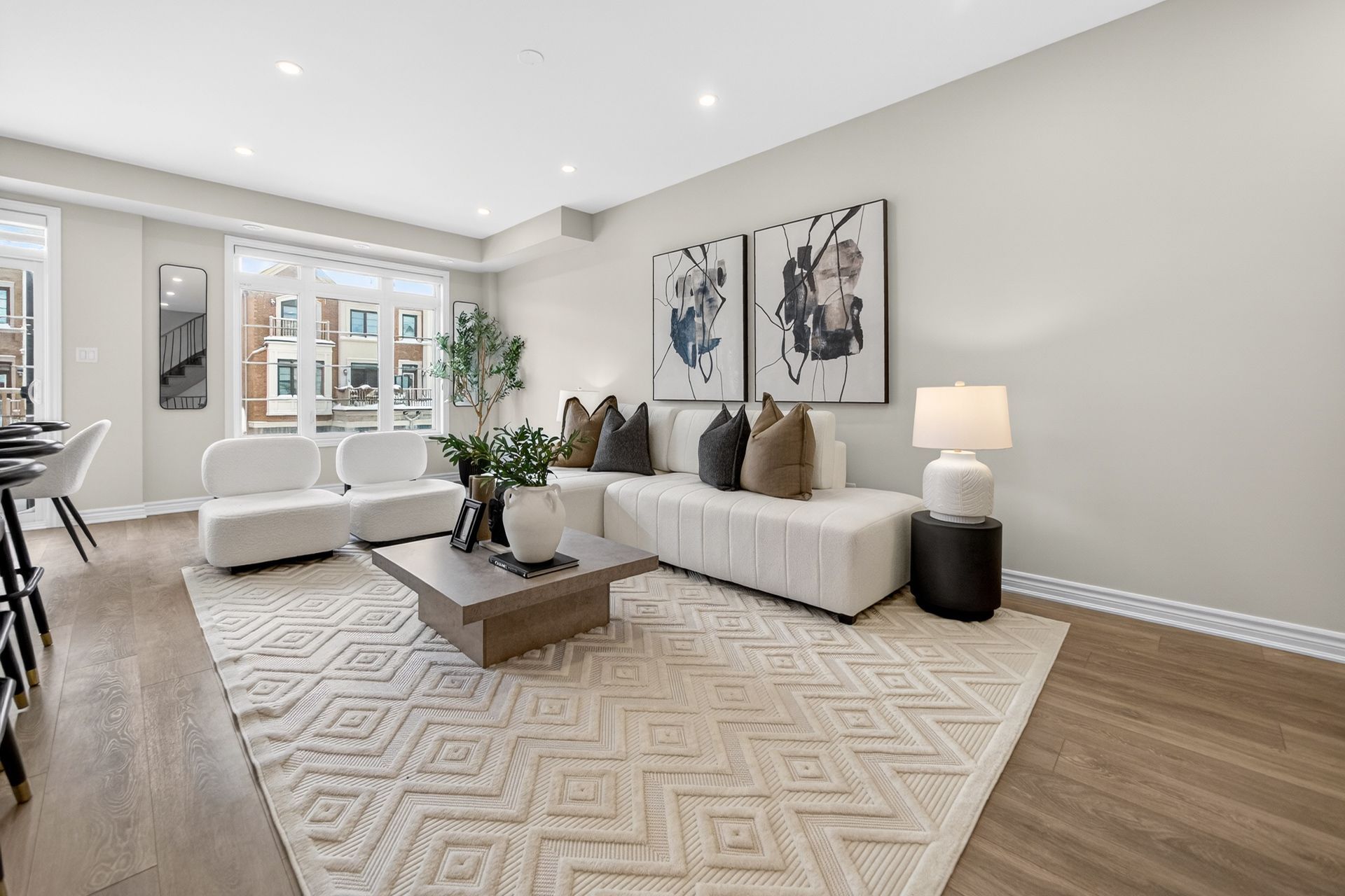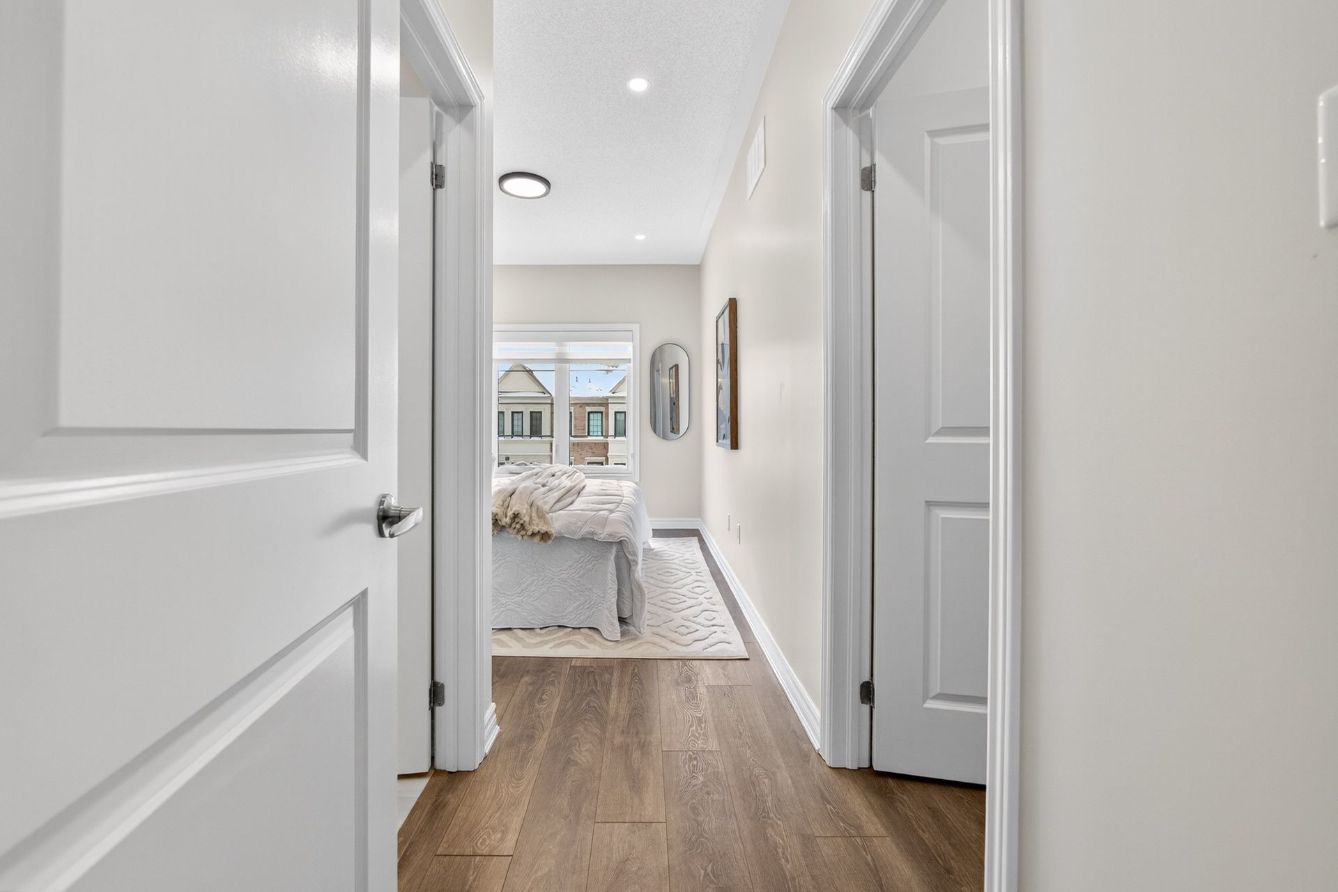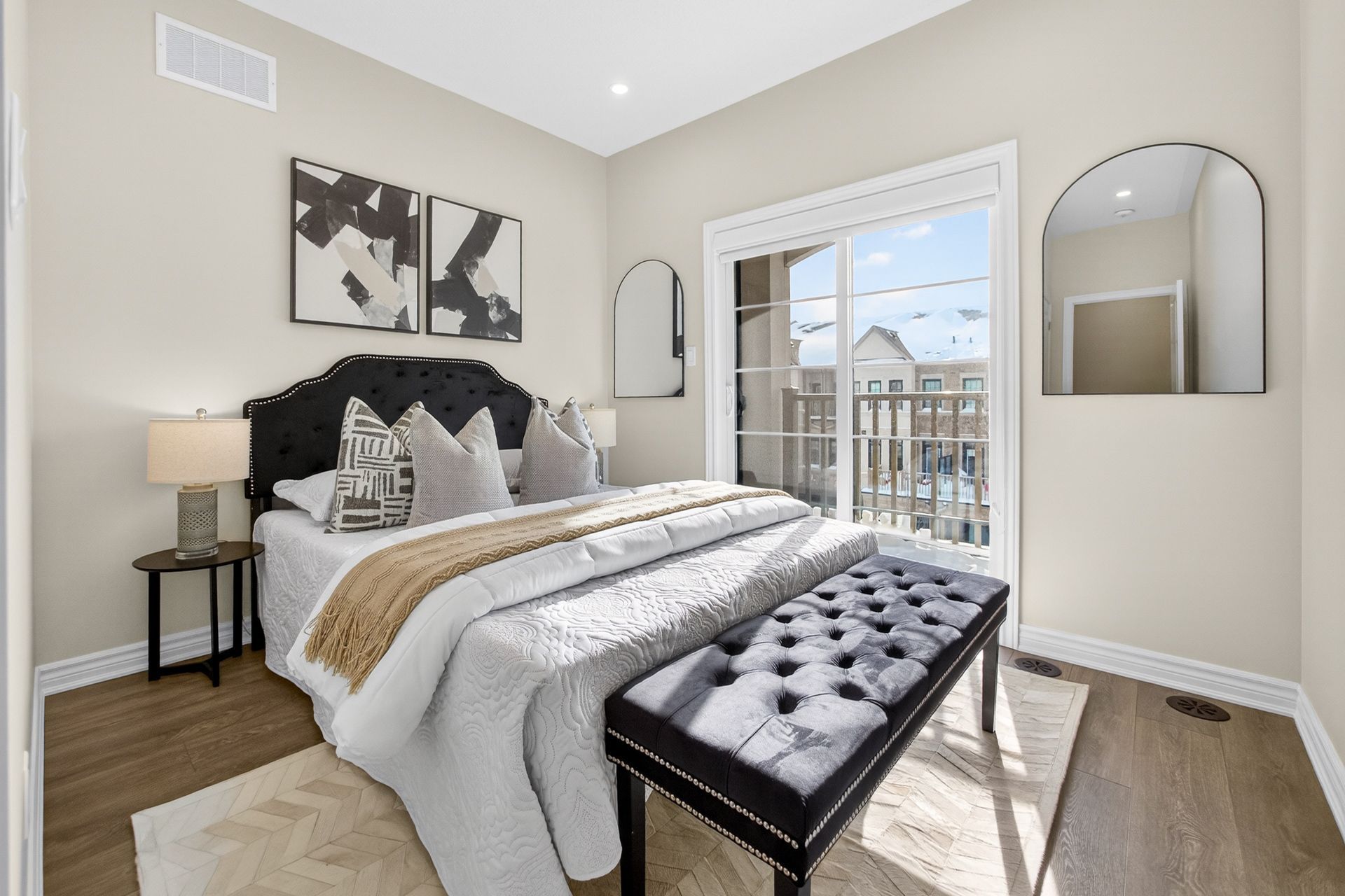 This stunning freehold three-storey townhome in Milton, built by the award-winning Great Gulf, offers a luxury open-concept layout with premium upgrades across all levels. The home features 9-foot ceilings on the main, second, and third floors, creating an airy and spacious atmosphere. Premium Kitchen with upgraded soft-close cabinet , quartz countertop with a waterfall edge, glass backsplash, and designer pendant lighting. Modern Flooring & Finishes: Laminate flooring is found throughout the home, complemented by hardwood stairs with iron pickets. The entire interior has been professionally painted. New Pot lights contribute to a luxurious look by offering a sleek, unobtrusive design that provides versatile, high-quality illumination , Smooth Ceiling for a Neat Look. Spacious Bedrooms & Baths. Both bedrooms are sized to accommodate King and Queen beds. The three upgraded washrooms feature high-ceiling mirrors, Quartz Counter Tops and glass enclosures for both the master ensuite and the second bathroom . Modern Window Rollers . The property includes three-car parking with no sidewalk and features balconies on both the second and third levels. Entrance to Home from garage and Garage opener for Easy Daily Access .Located in the visionary master-planned community of Milton Village, the home is positioned near Hwy 25 and Britannia Road. Conveniently close to the Milton GO Station and Highways 401 and 407 and Minutes away from Rattlesnake Point and Kelso Conservation Area