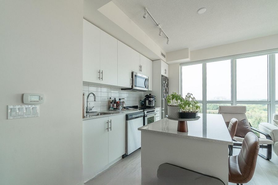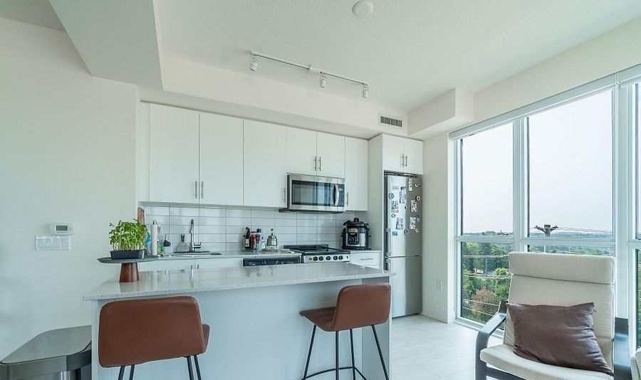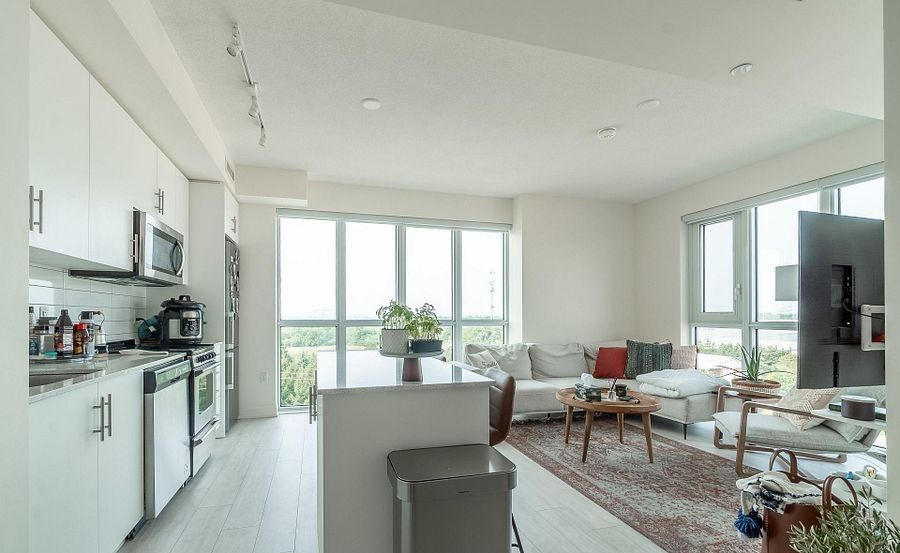 Remarks for clients- A beautiful 2 plus 1 and 2 full washrooms corner unit , tons of natural light . Private parking and locker with appealing price in Dunwest condos by Greenpark in Desirable North Oakville! This spacious suite offers almost 1000 SF of open concept living, featuring 10 feet ceiling, laminate flooring and a private balcony. The modern kitchen is equipped with quartz countertops and stainless steel appliances. The primary bedroom includes a huge closet and a 4 piece ensuite washroom. Ideally located just steps from Fortinos , restaurants, banks , clinics, pharmacies and many more . Close to highway 403 , 407 , QEW , Go transit, Sherden College, Schools and Oakville Trafalgar Hospital. Building amenities include 24 hour concierge, rooftop terrace, party/ dining, fitness, yoga studio. perfect for modern urban living.