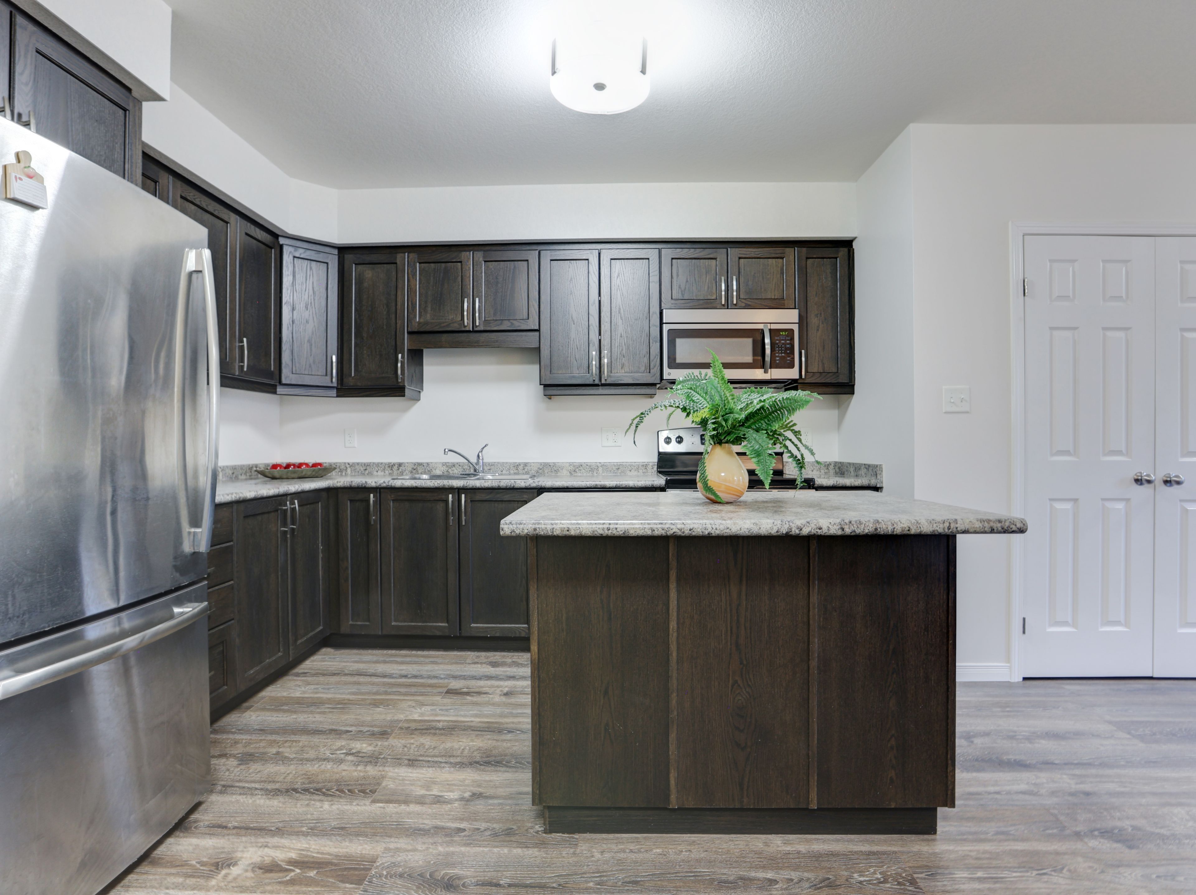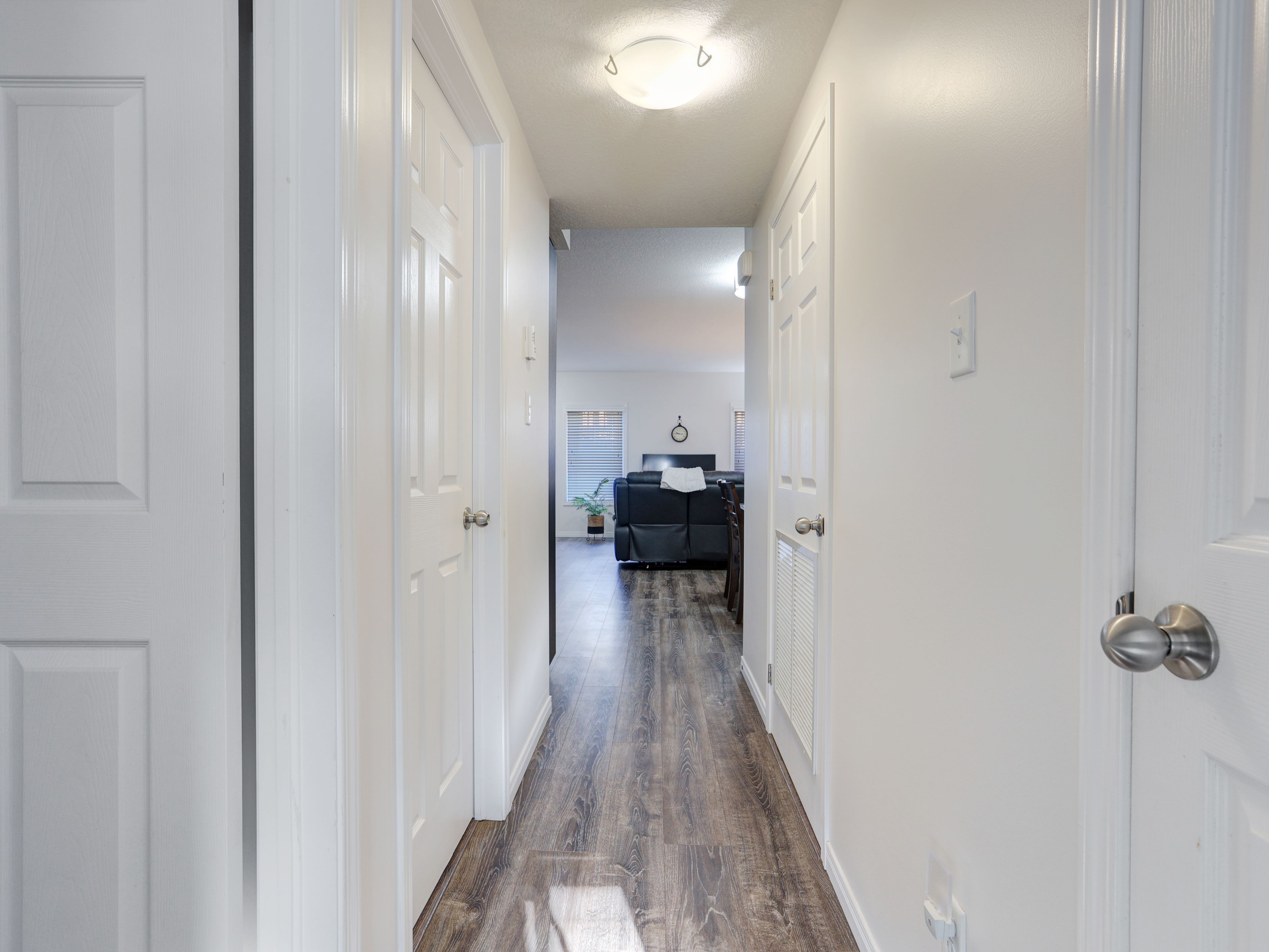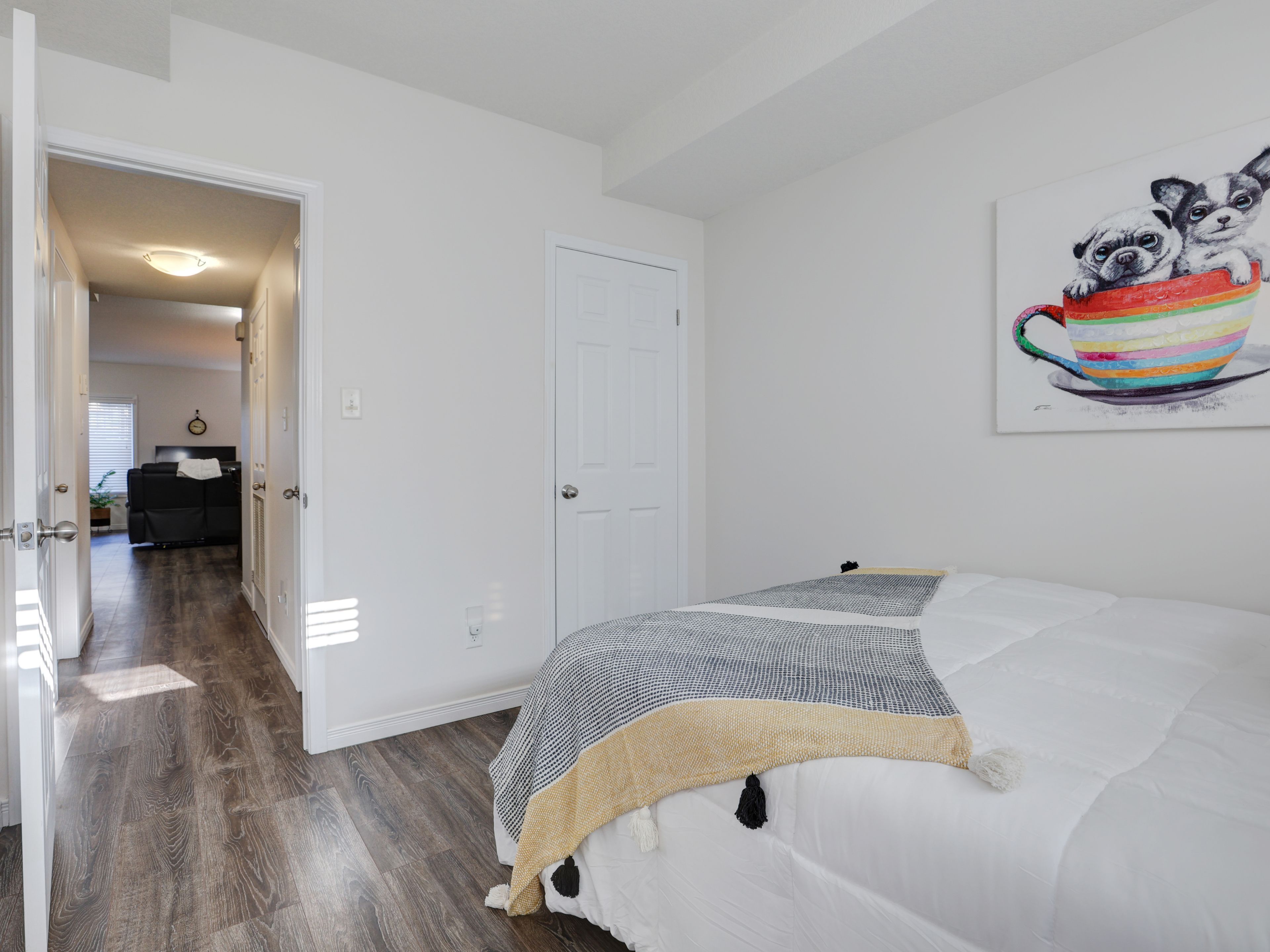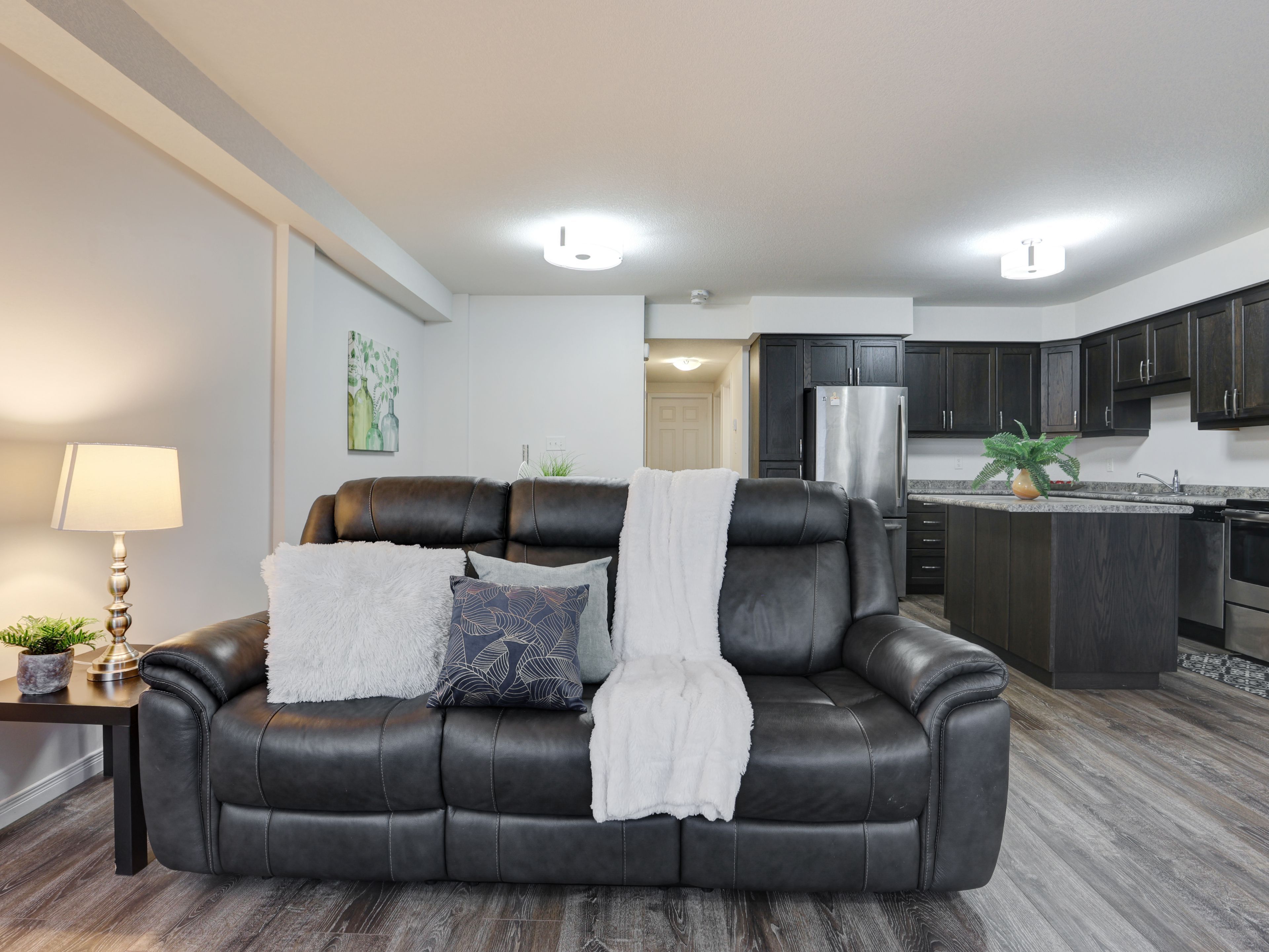 Welcome to this gorgeous stacked townhouse condo offering the perfect blend of comfort, convenience, and modern design! This beautifully maintained 2-bedroom, 1-bathroom unit features an open-concept layout with carpet-free living, neutral tones, and a bright, inviting atmosphere. The modern kitchen is a showstopper complete with stainless steel appliances, stylish cabinetry, a large island with breakfast bar, ample storage, and sleek finishes. The spacious living and dining area make entertaining a breeze, while the private covered front patio offers a peaceful outdoor retreat. Both bedrooms are generous in size, including a large primary with great closet space. Enjoy the convenience of in-suite laundry, a large walk-in front storage closet, and an additional utility room for even more storage options. Recent updates include fresh paint throughout and upgraded lighting. Perfectly located in highly sought-after Laurentian West, this home is just minutes from The Boardwalk, Sunrise Shopping Centre with superstores like Walmart, Canadian Tire, Home Depot and more, as well as schools, parks, trails, playgrounds, and quick access to Hwy 7/8/401. The well-kept complex features visitor parking and a private playground, making it ideal for first-time buyers, downsizers, or investors seeking a move-in-ready home in a fantastic location. With parking right in front of your unit, a quiet community setting, and close proximity to everything you need, this stylish condo truly checks all the boxes. Move right in and start enjoying modern living at its best this is the one you've been waiting for!!